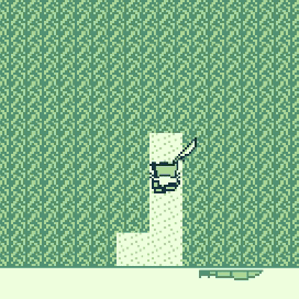 The solution came in the form of tile swapping. I could swap out pieces of the Background with art of grass and then swap them with cut grass when the player swings their machete over them. But even with this method, I could only get 40 or so pieces of grass on screen. Since the GB screen was about 10x8 (with a HUD on the 9th row) this was half the amount of grass I wanted to fill. At some point it occurred to me if I simplified the grass tiles to be repeating instances of 8x8 instead of 16x16, I could fit 4 times as much grass on screen.